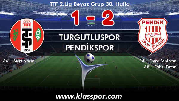 TFF 2.Lig Beyaz Grup 30. haftasında Turgutluspor ile Pendikspor Stadı'nda bir araya geldi. Karşılaşmayı Pendikspor 2-1 kazandı.