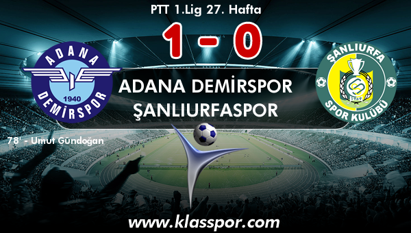 PTT 1.Lig 27. haftasında Adana Demirspor ile Şanlıurfaspor 5 Ocak Fatih Terim Stadı'nda bir araya geldi. Karşılaşmayı Adana Demirspor 1-0 kazandı.