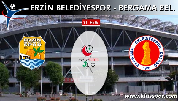 TFF 3.Lig 3.Grup 31. haftasında Erzin Belediyespor ile Bergama Bel. arasında oynanacak karşılaşmasının kadroları belli oldu.Bugün 14:30'da Stadyumunda oynanacak karşılaşmayı hakem Selim Özen yönetecek.