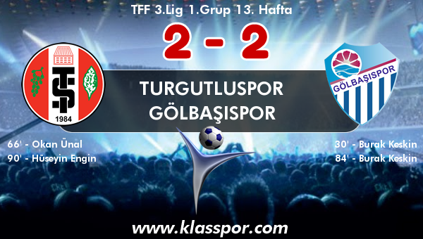 TFF 3.Lig 1.Grup 13. haftasında Turgutluspor ile Gölbaşıspor Stadı'nda bir araya geldi. Karşılaşma beraberlik ile sonuçlandı.