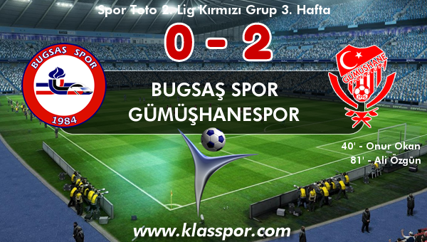 Spor Toto 2. Lig Kırmızı Grup 3. haftasında Bugsaş Spor ile Gümüşhanespor Ankara Ostim Stadı'nda bir araya geldi. Karşılaşmayı Gümüşhanespor 2-0 kazandı.