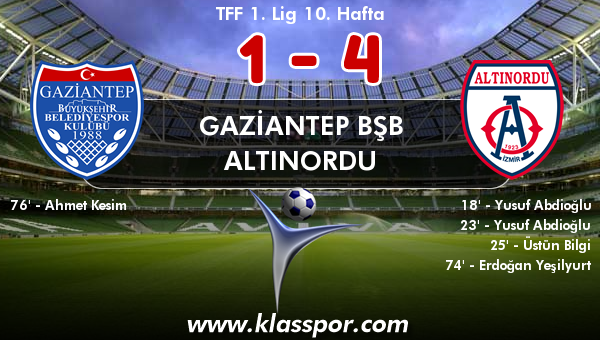 TFF 1. Lig 10. haftasında Gaziantep BŞB ile Altınordu Kamil Ocak Stadı'nda bir araya geldi. Karşılaşmayı Altınordu 4-1 kazandı.