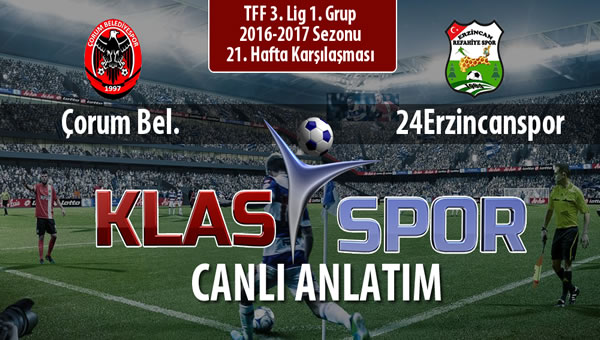 TFF 3. Lig 1. Grup 21. haftasında Çorum Bel. ile Anagold 24Erzincanspor arasında oynanacak karşılaşmasının kadroları belli oldu.Bugün 13:30'da Dr.turhan Kılıççıoğlu Stadyumunda oynanacak karşılaşmayı hakem Yasin Kol yönetecek.