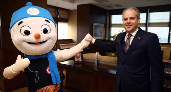 Gençlik ve Spor Bakanı Akif Çağatay Kılıç, Erzurum'un ev sahipliği yapacağı 13. Avrupa Gençlik Olimpik Kış Festivali'nin resmi maskotu Karbeyaz ile bir araya geldi.