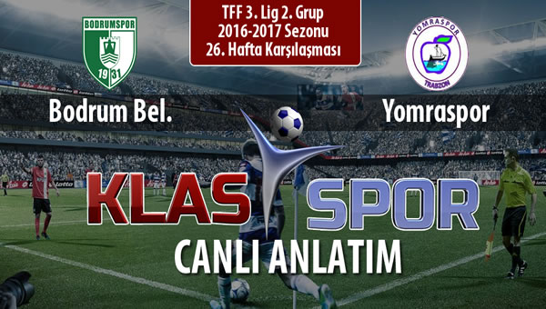 TFF 3. Lig 2. Grup 26. haftasında Bodrum Bel. ile Yomraspor arasında oynanacak karşılaşmasının kadroları belli oldu.Bugün 15:00'da Stadyumunda oynanacak karşılaşmayı hakem İlker Yasin Avcı yönetecek.