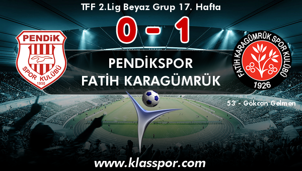 TFF 2.Lig Beyaz Grup 17. haftasında Pendikspor ile Fatih Karagümrük Pendik Stadı'nda bir araya geldi. Karşılaşmayı Fatih Karagümrük 1-0 kazandı.