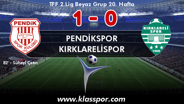 TFF 2.Lig Beyaz Grup 20. haftasında Pendikspor ile Kırklarelispor Pendik Stadı'nda bir araya geldi. Karşılaşmayı Pendikspor 1-0 kazandı.
