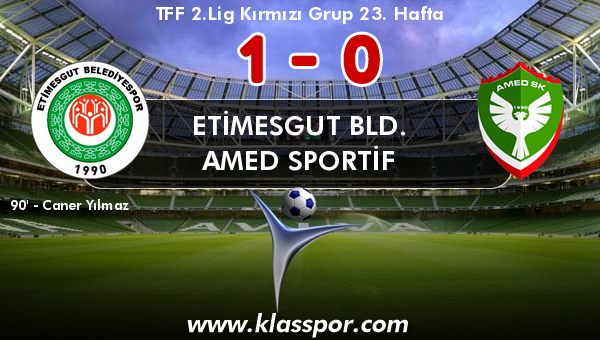 TFF 2.Lig Kırmızı Grup 23. haftasında Etimesgut Bld. ile Amed Sportif Kemal Atatürk Stadı'nda bir araya geldi. Karşılaşmayı Etimesgut Bld. 1-0 kazandı.
