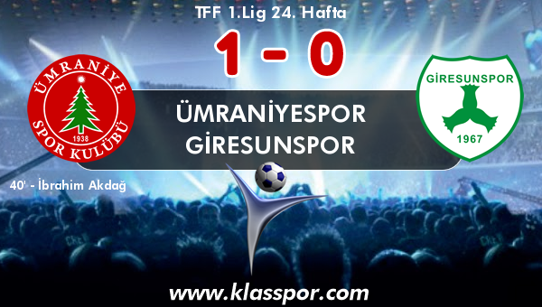 TFF 1.Lig 24. haftasında Ümraniyespor ile Giresunspor Stadı'nda bir araya geldi. Karşılaşmayı Ümraniyespor 1-0 kazandı.