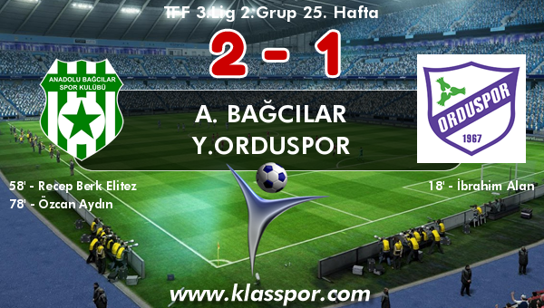 TFF 3.Lig 2.Grup 25. haftasında A. Bağcılar ile Y.Orduspor Stadı'nda bir araya geldi. Karşılaşmayı A. Bağcılar 2-1 kazandı.