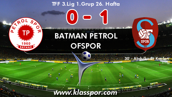 TFF 3.Lig 1.Grup 26. haftasında Batman Petrol ile Ofspor Batman 16 Mayıs Stadı'nda bir araya geldi. Karşılaşmayı Ofspor 1-0 kazandı.