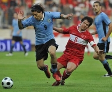 62. dakikada Uruguay'ın sağdan kullandığı köşe vuruşunda kaleci Volkan boşa çıktı. Godin'in kafa vuruşunda top üstten auta gitti.