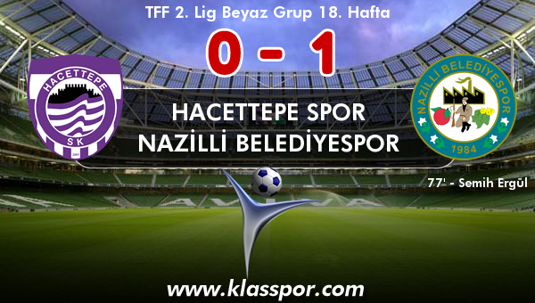 TFF 2. Lig Beyaz Grup 18. haftasında Hacettepe Spor ile Nazilli Belediyespor Cebeci İnönü Stadı'nda bir araya geldi. Karşılaşmayı Nazilli Belediyespor 1-0 kazandı.