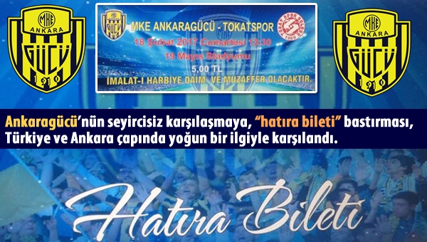 Ankaragücü’nün Tokatspor ile oynayacağı seyircisiz maç için hatıra biletleri bastırması yoğun ilgi gördü.