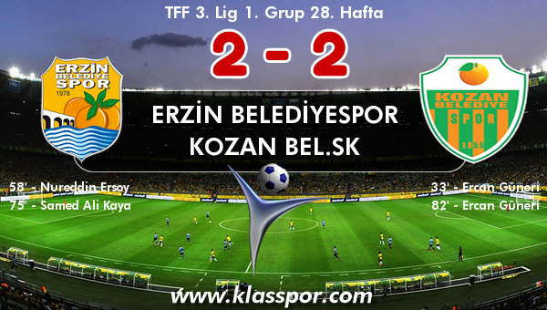 TFF 3. Lig 1. Grup 28. haftasında Erzin Belediyespor ile Kozan Bel.SK Stadı'nda bir araya geldi. Karşılaşma beraberlik ile sonuçlandı.